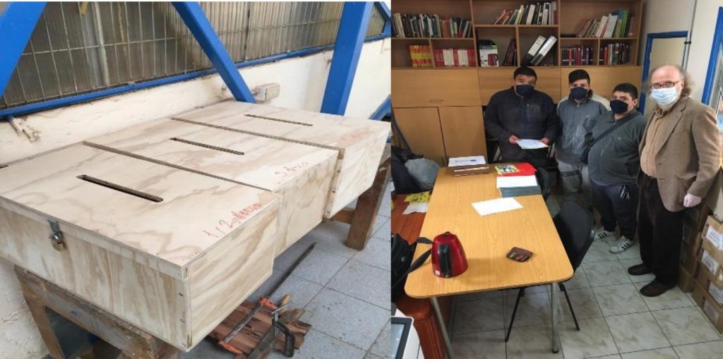 Al respecto, cabe destacar que, con la guía e instrucciones del profesor de taller, don Patricio Valdés, los alumnos elaboraron buzones de madera (uno por cada nivel) con el objetivo de ir depositando ahí el material didáctico que ya tienen listo para ser revisado. Luego, este es recogido por los monitores quienes lo entregan al profesor que llega a cumplir su turno ético.